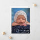 Anpassningsbar Photo Collage Script Overlay Baby Birth Notice är en mycket populär modern design som erbjuder en hjältebild på framsidan under presentationen och namn övertäckningen. Bakgrunden har fyra fotosamlingar med mallar för namn, födelsestatus och välkomnas med text.