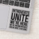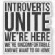 Fira din tysta sida med humor med detta djärva och igenkännliga “Introvertklistermärke - Vi är här, vi är obekväma, och vi vill åka hem” klistermärke! Designat i ren, högkontrastig typografi, är detta klistermärke perfekt för bärbara datorer, anteckningsböcker, vattenflaskor, surfplattor och överallt där du vill dela lite introvertdriven ärlighet.