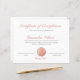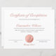 Ett intyg om slutförande från elegant och professionell stil. Den här designen har klassisk kalligrafi för snyggt. Perfekt för skönhetsakademier, utbildningsprogram för lash-teknik, kosmetologi skolor, instruktörer m.fl. Enkel att anpassa design. Observera att uppgifterna om ro guld och glitter simuleras.