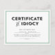 Om du har gjort något fel och måste be om ursäkt, gör det med ett officiell-certifikat för Idiocy-vykort. Utrymme för personlig anpassning på framsidan med ditt namn och namnteckning och gott om utrymme på baksidan för en mer utdragen ursäkt. Finns i andra format och i färger.