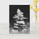 Ett slå svartvitt fotograferar av en steninukshuk, använt som en riktningsmarkör i historiska tider men nu gemensamt - sett på vägrenar och i parker.