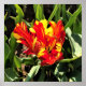 Visa inuti en Flaming Parrot Tulip. Den röda och gult färg är så livfull! Foto taget i april 2019 på Troden Shoe Tulip Farm, Woodburn, Oregon.