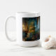 En digital målning av en dekorerad fir träd inomhus. Classic Mugg, 15 oz
