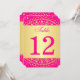 Du MÅSTE ändra siffran "12" till varje nummer du behöver, lägga till det i din varukorg och sedan upprepa processen tills du har alla de individuellt numrerade korten du behöver i din varukorg. Detta dubbelsidiga bordskort i exotisk het rosa och guld har ett stort centralt guldlaterankreis-mönster med utsmyckade virvlande hjärtan och detaljer på sig med guldstjärnor och prickar som ligger ovanpå en fuksia-bakgrund med ytterligare ett lager av fina ljusa lila-virvlar och -slingor på sig. ****VÄNLIGEN OBSERVERA att ingen av elementen på denna inbjudan är upphöjda eller präglade. Allt är tryckt plant. Detta bordskort skulle vara perfekt för en vår-, sommar-, höst- eller vinterindisk, hinduisk eller