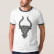 Detta stylized symbol för zodiacen undertecknar av Oxen dekoreras med invecklad linjer och pricker mönster. Den symmetriska designen presenterar ett utarbetadt tjurhuvud med stora horns som flödar uppåt, och en ring i den är näsan. Ett litet symbol för Oxen presenteras på baksidaen av skjortan som precis lokaliseras under förse med krage. Denna bedöva svart- och grå färgdesign är ett härligt, och snyggten långt som av visar ditt astrologiskt, undertecknar.