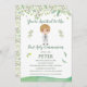 Invitación de Primera Comunión de la colección PETER, bellamente decorada con hojas de eucalipto. A juego con todos los artículos de esta colección. Tienes tazas, servilletas, platos de papel, bandejas, etiquetas, cajas y un montón de cosas más a juego para que no falte ningún detalle en la decoración de tu evento.
