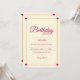 Invitación de cumpleaños color amarillo claro con corazones rosas aesthetic. Birthday girl.