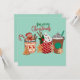 Celebrate the holiday season with this festive sticker featuring hot cocoa with marshmallows, two iced coffee cups with whipped cream, a gingerbread cookie, and other Christmas elements. Perfect for decorating mugs, planners, laptops, or gift wrapping.