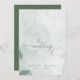Elegant, eucalyptus green wedding invitations in a simple and minimalist layout. Very stylish and refined with modern handwritten script and abstract watercolor background image. English wording, see other listing for French version.