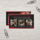 Iögonfallande modern frisör i rött svart vitt visitkort