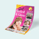 Denna iögonfallande flygbladsmall är perfekt för att marknadsföra dina hår- och sminkstjänster. Med en glamourös design och utrymme för att visa upp dina färdigheter inom klippning, färgning och smink, kommer denna mall säkert att locka nya kunder. Anpassa enkelt mallen med dina egna bilder, text och varumärke för att skapa ett unikt marknadsföringsverktyg som speglar din stil.