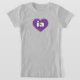 Denna t-shirt har ett skarpt och dynamiskt hjärta för lila som innehåller det feta, vita, rundade nedre brev ia, en lekfull förkortning för Iowa, hökeye-tillståndet.