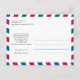 Ett roligt och kreativt bröllop "Save the Date" att skicka till alla dina gäster för att meddela om er destination bröllop. Flygpost design i rött och blått med karta över USA. Två hjärtan på kartan markerar Cedar Rapids Iowa och Western Massachusetts och dessa är sammankopplade. Lägg till tre av dina favoritfoton som frimärken. Om du har en annan plats, vänligen maila paula@labellarue.com INNAN du lägger en beställning så att en ny design kan skapas åt dig.