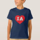 Denna t-shirt har ett pulserande rött hjärta som innehåller det feta, vita, övre fodral brev IA, förkortningen officiell för tillståndet Iowa, hökstaten öga.