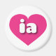 Den här magneten har ett pulserande shock rosa-hjärta som innehåller det feta, vita, rundade nedre brev ia i fodral, en lekfull förkortning för tillståndet Iowa, hökeye-tillståndet.