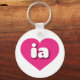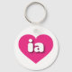 Den här nyckelringen har ett pulserande shock rosa som innehåller det feta, vita, rundade nedre brev ia i fodral, en lekfull förkortning för tillståndet Iowa, delstaten Hawk öga.