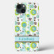 Denna personlig Fodral-Mate Barely Där iPad mini fodral har en vit och akvblåstrimlad bakgrund med en abstrakt mönster av kalkgrönt, turkos, bruna och vita blommor och cirklar med ett band för att lägga till namn, ursprunglig text, monogram eller annan text i. Detta moderna och nya trendig fodral gör en chic påstående för den unga höftskammen! Om du behöver hjälp kan du skicka e-post till niteowlstudio@gmail.com.