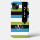 Den här personligen svart, vit, turkosblå och oliv grönt Fodral-Mate Barely Det iPad mini Retina visning fodral har en bred, modig, strimlad bakgrund mönster och ett svart banderoll med vit sömnad som du kan lägga till ditt namn, initialer, monogram eller annan text i. Detta moderna och nya trendig fodral gör en chic påstående för den unga höftskammen! Om du behöver hjälp kan du skicka e-post till niteowlstudio@gmail.com.