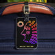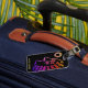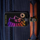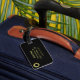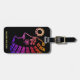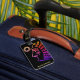 Resväskemärke med en färgglad teckning av den majestätiska Machu Picchu på svart bakgrund. Namn och stad redo att anpassas. Ipanema pastellfärg är en kombination av gula, rosa, violetta och blå nyanser.