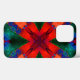 Den här sturdy-mobilfodralet omges av briljant rött och grönt mönster.