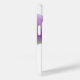 iPhone 14 fodral visas i ett vitt färg med en lila blommigt-utskrift. Anpassa eller köp som det är.