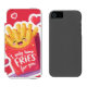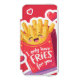 A cute and colorful cartoon illustration of a red French fries carton with a happy kawaii smiling face. The design features a floating red heart and the romantic funny pun quote "I only have FRIES for you". The image has a white sticker border, making it perfect for Valentine's Day greeting cards, fast food lovers, and humorous romantic gifts. Isolated design.