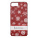 Den här personligen har Fodral-Mate-anpassningsbarna iPhone 7 fodral en röd fack-överlappande bakgrund med ett vitt snöflingor mönster överst och ett vitt band där du kan lägga till ditt namn, inledande namn, monogram eller annan text i. Detta moderna och nya trendig fodral gör en chic påstående för den unga hövdmoderisten i vinter! Om du behöver hjälp kan du skicka e-post till niteowlstudio@gmail.com.