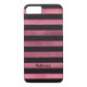 Den här personligen har svart och faux rosa foil strippat Fodral-Mate anpassningsbar iPhone 7 fodral simulerat glitter längs faux foil rand. Lägg till ditt namn, initialer, monogram eller annan text till detta moderna och trendig nya fodral och visa alla vilken chic du är på modet! Om du behöver hjälp kan du skicka e-post till niteowlstudio@gmail.com.