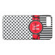 Den här personligen svartvit Fodral-Mate-anpassningsbar iPhone 7 fodral har en roligt-polka-punkt, strimlad bakgrund mönster med ett rött och svart giraffband och en cirkel för att lägga till ditt namn, initialer, monogram eller annan text i. Detta moderna och nya trendig fodral gör en chic påstående för den unga höftskammen! Om du behöver hjälp kan du skicka e-post till niteowlstudio@gmail.com.