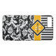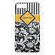 Den här personligen svarta och vita Fodral-Mate-anpassningsbarna iPhone 7 fodral har en blommigt och en strimlad bakgrund mönster med en guldsenap-gult och vitt band och romb för att lägga till ditt namn, initialer, monogram eller annan text i. Detta moderna och nya trendig fodral gör en chic påstående för den unga höftskammen! Om du behöver hjälp kan du skicka e-post till niteowlstudio@gmail.com.