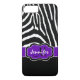 Den här personligen svart och vit Fodral-Mate-anpassningsbar iPhone 7 Plus fodral har en roligt zebra tryck-strimlad mönster med ett lila- och svart band för att lägga till ditt namn, initialer, monogram eller annan text i. Detta moderna och nya trendig fodral gör en chic påstående för den unga höftskammen! Om du behöver hjälp kan du skicka e-post till niteowlstudio@gmail.com.