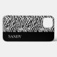 Iphone case visas i ett zebra tryck med ett anpassningsbar prov på namn. Anpassa det här objektet och ändra namn till ditt. Lagrar Image vecteezy.com