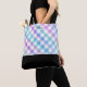 Iridescent Rosa och Blue Gingham Mönster med Monogram Tote Bag
