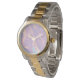 En handklocka i eleganten med en eterisk ansikte som reflekterar subtil iridescent färg.