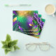 Strukturella mardigrasbakgrund med fläckar av lila, gult och grönt, dekorerade med fluffa fjädrar och glansig pärlor. Mardi gras helgdag.