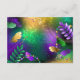 Iridescent mardi gras-bakgrund med pärlor rådkort