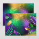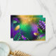 Iridescent mardi gras-bakgrund med pärlor tack kort