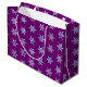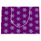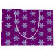 Isig, ihärdig snowflake mot en djup ametyst-lila-bakgrund, stor presentväska