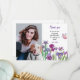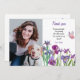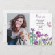 Iris-blommornas födelsedag Tack-kort med blommor från söt vild land i lila, lavender, grönt löv med mera, med ett borstat skript-typografi på en elegant som kan redigeras med foto och bakgrund.