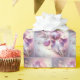 Rosa och lila iris-blomma med invecklade detaljer i guld och försedd med daggdroppar