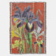 Den här vackra täckfilten har en vacker vintage som illustrerar iris-blommor som är förskönad med kalligrafisk blomning. Den här modellen visas med rött - men den här täckfilten är anpassadet i ditt val av bakgrund färg för att förbättra utrymmet i ditt hem. Det är ett fint tillägg till din terrorträdgård. Väldigt unikt och mycket vackert.