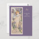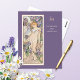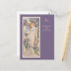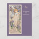 Ett vykort med vintagen som illustreras av Alphonse Mucha från The Flower Series, Iris (1898), som har återupprättats och förbättrats digitalt. En porträtt av en kvinna på en kvällsgäst omgiven av lavender iris-blommor.