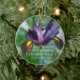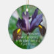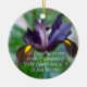 Ett foto av en lila iris på en suddig grönt med texten "En blomma konkurrerar inte med blomman bredvid den. Det blossar bara"