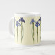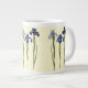 Trio med blå och lila iris på en pastelljumbo mugg.