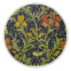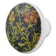 Den här designen innehåller ett tygmönster som skapats av den brittiske konstnären William Morris (1834-1896), som är associerad med konst- och hantverksrörelsen. Den skildrar blommor av blått och orange i ett elegant symmetriskt mönster. Blomman heter efter Iris, som var regnbågens grekiska gudinna och budbärare för de olympiska gudarna, som förde budskap till mänskligheten. Iris-växternas löv och stammar återges i blått och grönt. Det finns några fåglar i gulten som lever på en del av plantornas löv. Mönster var designat av William Morris 1887.