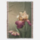 Elegantens blommigt-vattentäckfilt, med grafik av en vacker iris- och fjärilsblomma av burgundisk och gräddskräm av färgad, mot bakgrund av en muterad grönt. Anpassa det här utseendet accent biet med all text du vill ha eller lämnar som för en underbar presentidé.