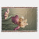 Elegant blomstermönstrad rumsaccent kastfilt, med grafik av en vacker burgunderröd och krämfärgad irisblomma och fjäril, mot en dämpad grön bakgrund. Anpassa denna accentdetalj med valfri text eller låt den vara som den är för en fin presentidé.