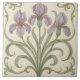 Graceful and symmetrical, this Art Nouveau ceramic tile features three delicately shaded purple irises framed by flowing green scrollwork. The ornamental composition evokes vintage elegance and botanical serenity, making it ideal for decorative wall panels, kitchen backsplashes, or seasonal accent pieces. With its harmonious curves and timeless palette, this tile brings a touch of floral sophistication to any space.