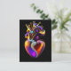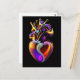 Dramatiskt och surrealistiskt iriserande anatomiskt stiliserat glas hjärta på svart bakgrund. Digital konst icke-traditionell Alla Hjärtans dag-kort med anpassningsbar text.