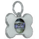Pet ID-tagg med ett foto av vissa Lila-/blåskärmsbilder med en suddig bakgrund av vattenfall. Detta togs i Chateau på Sjö i Branson Missouri på morgonen. Tittar du fler utskrifter eller produkter? Besök gärna min butik: http://www.zazzle.com/timelessmomentsphtgy Det här fotot togs av Jennifer White med Timless Moments Photography. Alla bilder är upphovsrättsskyddade © Timless Moments Photography.
